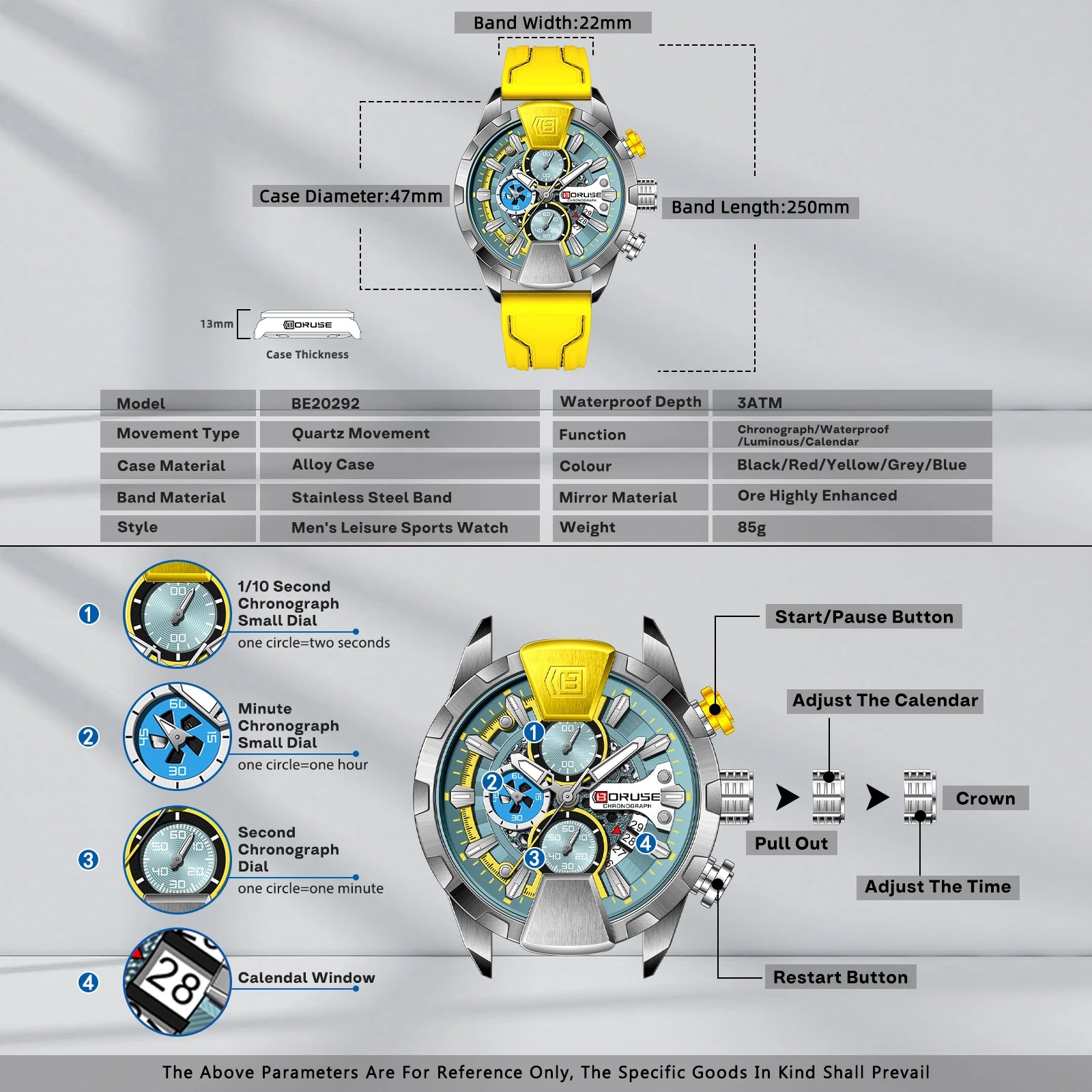 Montre BORUSE Chronographe Homme – Sport & Puissance (5 coloris)