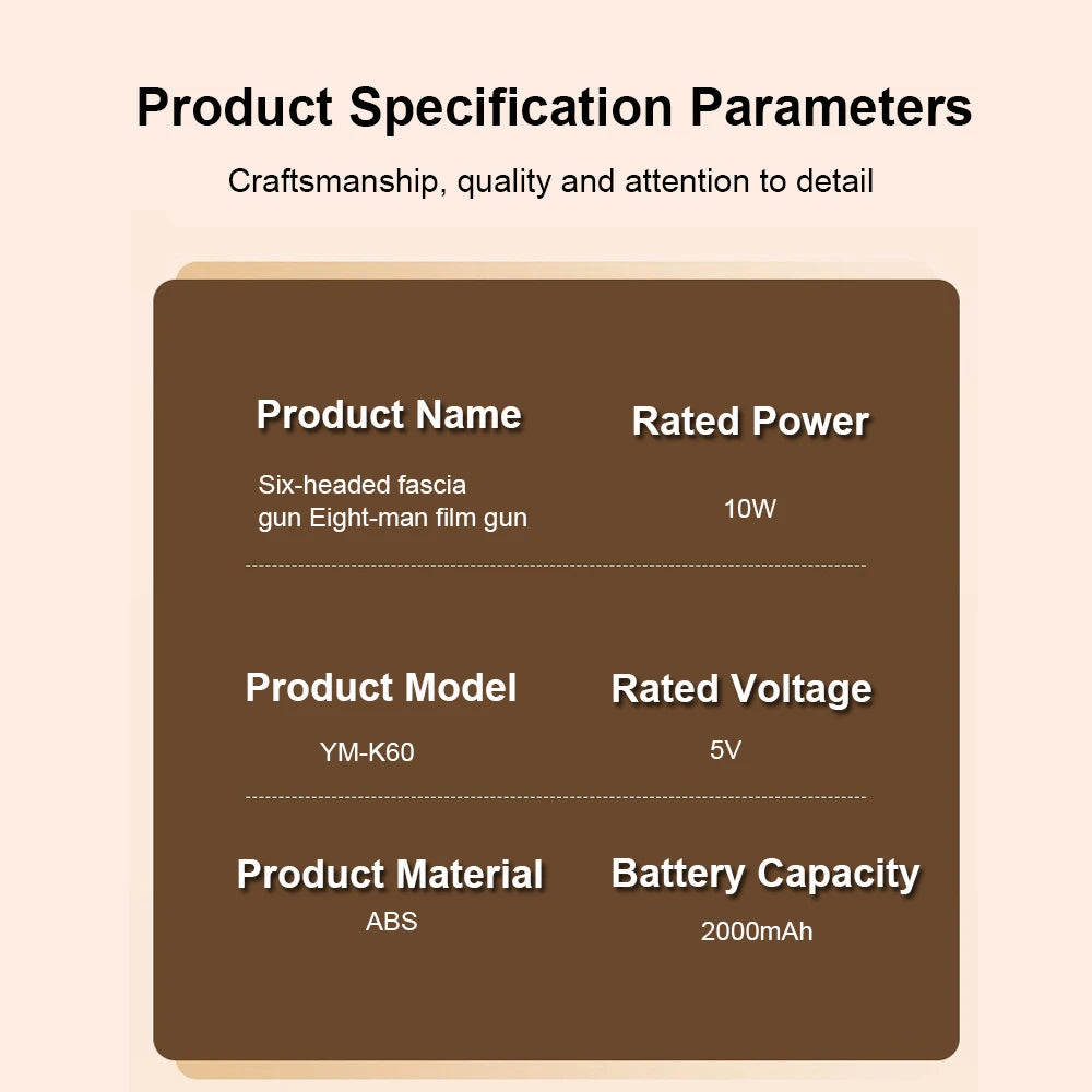 Pistolet de Massage Fascia 6 Têtes – Haute Fréquence & Relaxation Profonde